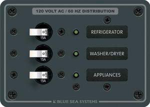 A.C. 3 pozisyonlu sigorta paneli 230V AC. 95mmx133mm. 30 AC etiket. 3 adet 8A otomatik sigorta.