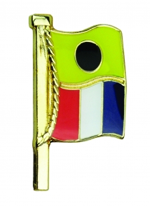 Uluslararası işaret bayrağı kodlarını kullanarak gizli anlamlar gösteren altın kaplama ve mineli rozet.