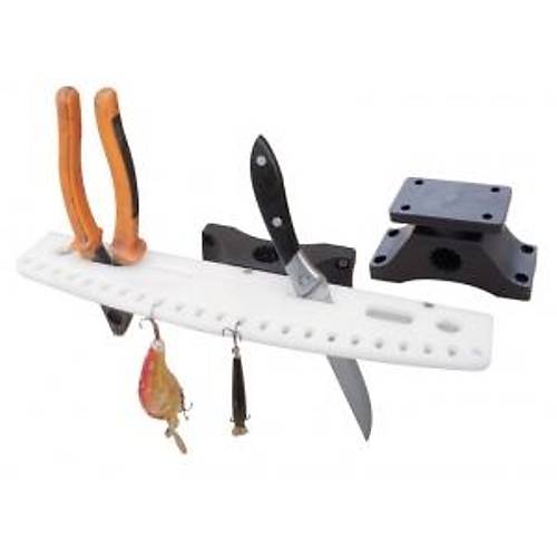Ağır hizmet amaçlı üretilmiştir. UV dayanımlıdır, marin sınıfıdır. Bıçak yuvası olarak kullanılabilir, pense konabilir, sahte balık asılabilir. Yana veya Ø 22/25 mm vardavelaya monte edilebilir. Raf boyu 35 cm.