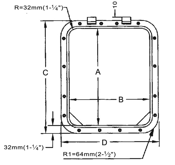 Gri akrilik cam. İçeriden açılımlı tip. 180° açılabilme imkanı. 32 mm yükseklik. Tüm çerçeve ve menteşeler 316 paslanmaz çeliktir. Görünmeyen yüzeylerin paslanmazlığını sağlamak amacıyla elektro polisaj yapılmıştır. Tüm ağır şartlara dayanıklı neopren contası vardır.