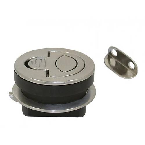 Gömme kulp. Su geçirmez, AISI 316 paslanmaz çelik. Kapaklar için. 3 mm arka halka ile birlikte plastik hazneli. Maksimum 22 mm kapı kalınlığına uygundur.