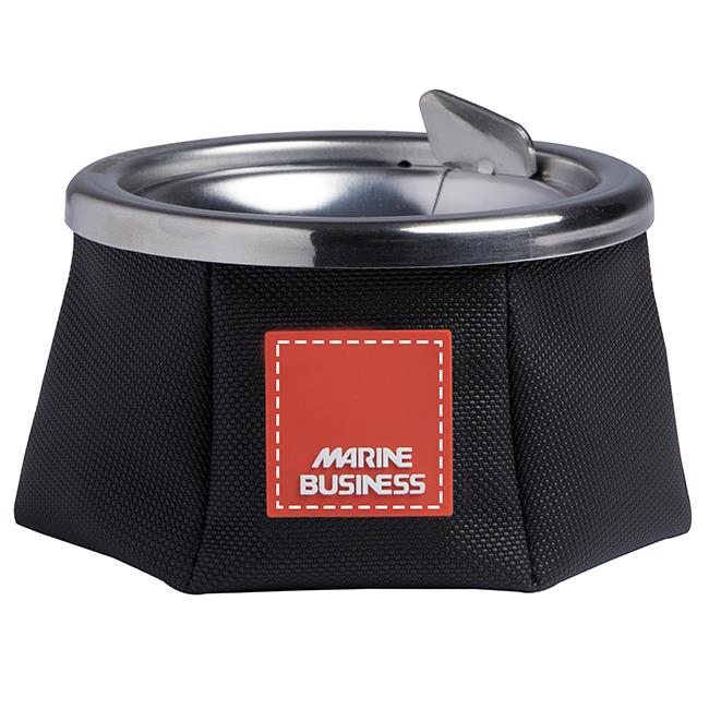 Rüzgar geçirmez ve darbeye dayanıklı küllük, paslanmaz çelik ve deri kumaştan yapılmıştır.