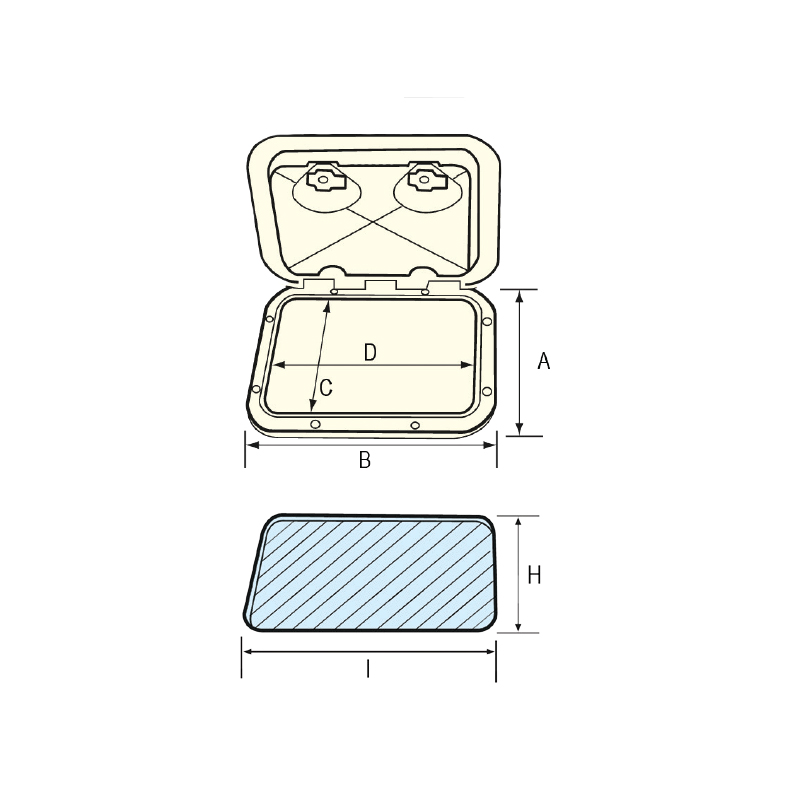 Beyaz. 180° açılabilir kapak. Vida delikleri kapak altındadır, kapalı iken görülmez.