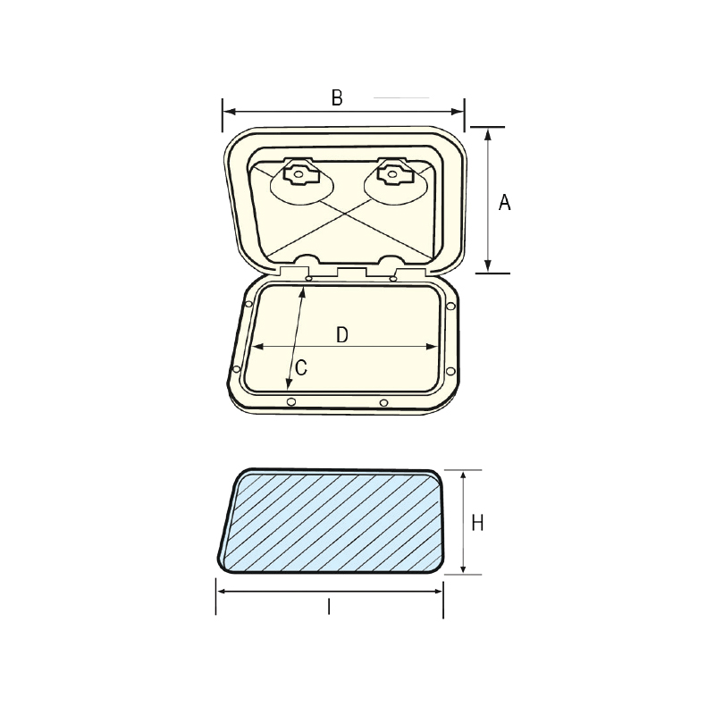 Beyaz. 180° açılabilir. Vida delikleri kapak altındadır, kapalı iken görülmez. Kilitli.