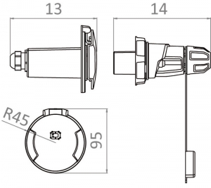 Fiş, ergonomik kavrama tasarımına sahiptir ve döner halka, onu IP67 su geçirmez bir kapakla yerleşik sokete sıkıca sabitlerken, kauçuk kapak, bağlı olmadığında IP44 seviyesinde koruma sağlar.