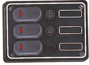 Sigorta paneli. Switch’ler su geçirmezdir. Panel alüminyum olup, 30’lu etiket seti standarttır. Switch 3