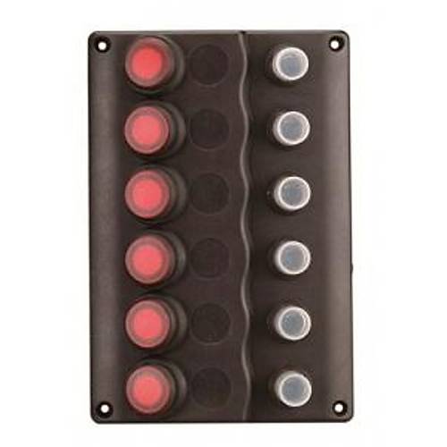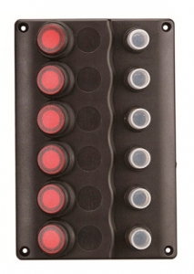 Su geçirmez sigorta paneli. 12V DC. Dalga dizaynlı. UV ışınlarına mukavim siyah plastik. 15A otomatik sigortalı ve led indikatörlü UL onaylı su geçirmez switch’li.Switch 6