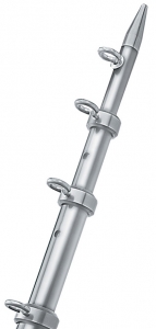 Taco Marine Outrigger. Optimum performans için dizayn edilmiştir. Outrigger direği, başı ve bilezikleri anodize alüminyumdur. Yaylar, butonlar ve gözler yüksek performanslı AISI 316 paslanmaz çeliktir. Teleskopik yapılarıyla iç içe geçirildiğide 180 cm’den az yer kaplar. Çift olarak sunulmaktadır. Montaj braketleri ve donanım ekipmanları ayrıca sipariş edilmelidir. Boy 549cm