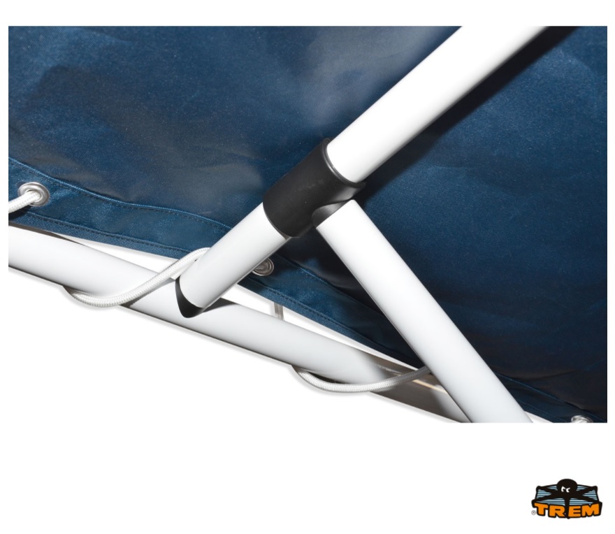 Ø32mm Beyaz toz boyalı anadize edilmiş alüminyumdan üretilmiştir. Su geçirmez ve UV ışınlarına dayanıklı mavi renkte polyester kumaşa sahiptir.